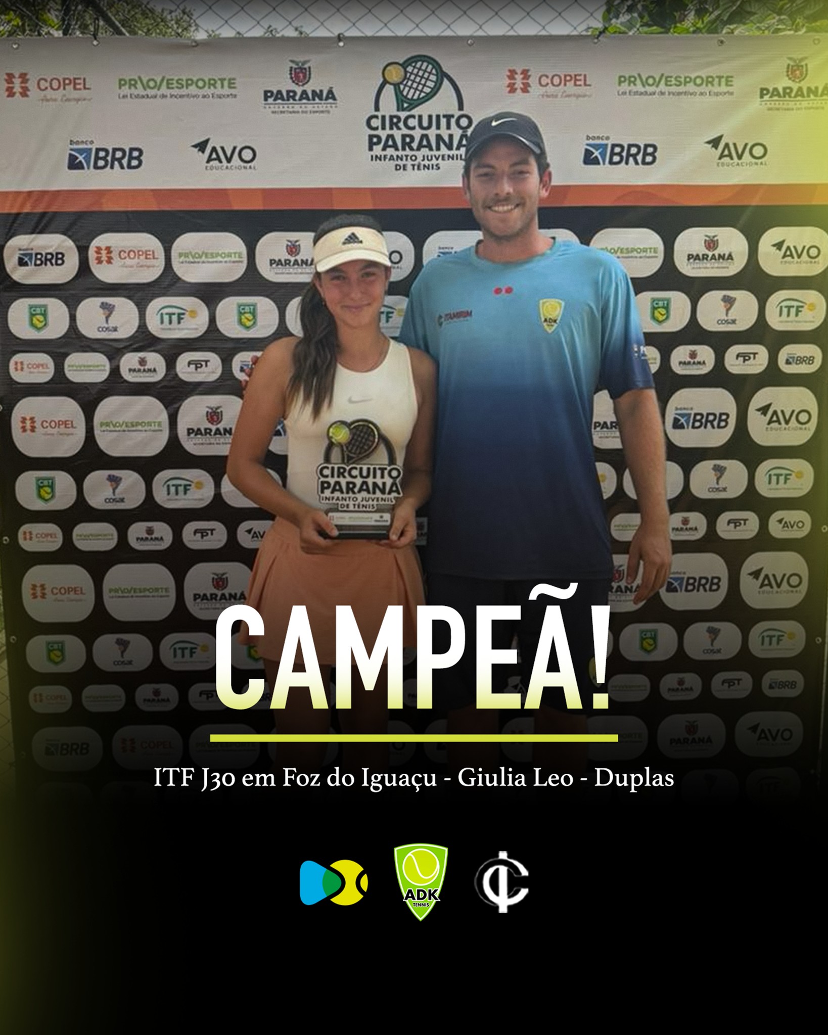 Giulia Leo é Campeã em Foz do Iguaçu! 28 de outubro de 2025 | Nenhum comentário Giulia Leo conquista o título de duplas no ITF J30 de Foz do Iguaçu! Parabéns pelo torneio @giulia_bajsic_leo 👏👏👏 Notícias