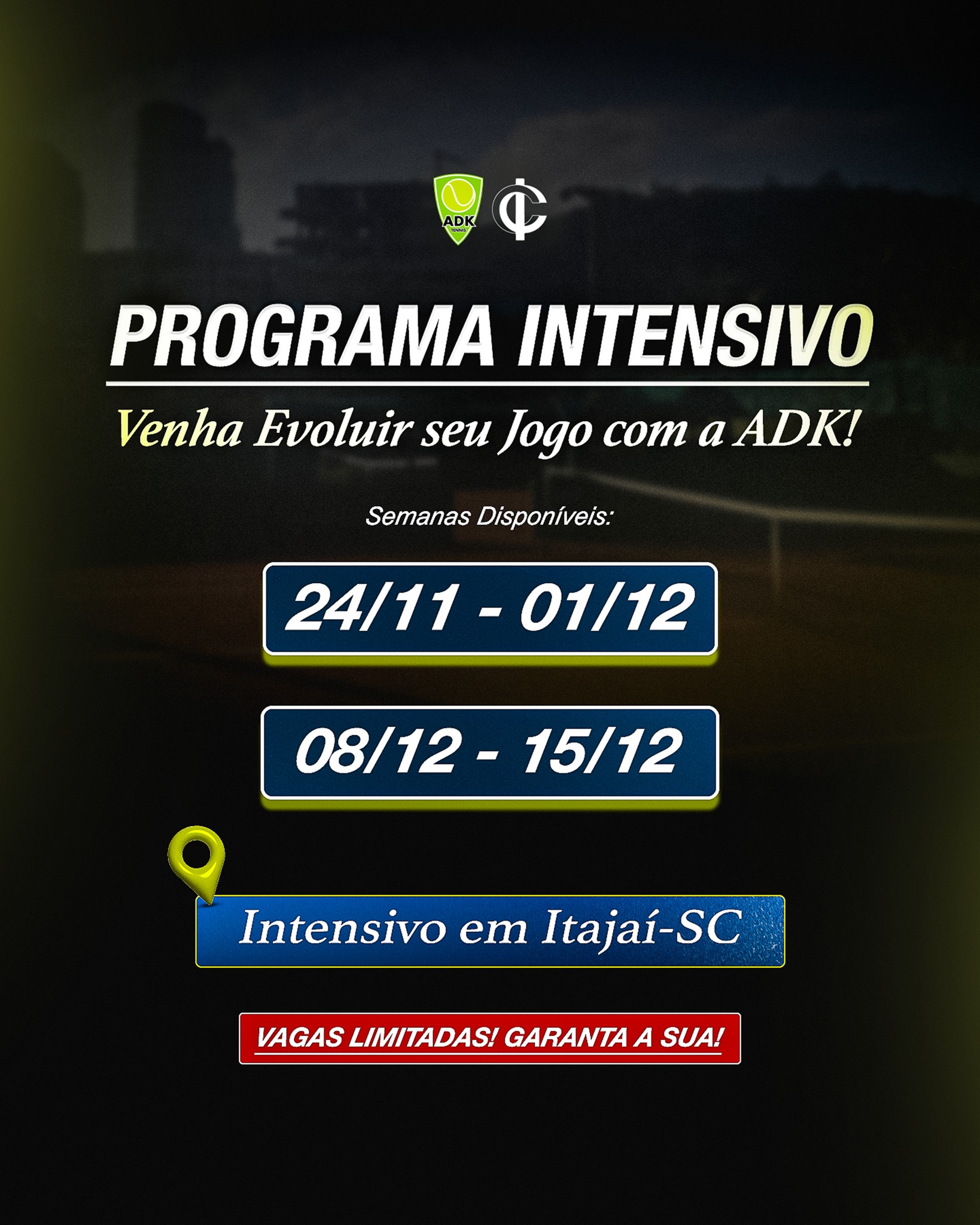 As inscrições para o Programa Intensivo de Férias ADK já estão abertas! 🔥🎾 👉 Escolha onde e quantas semanas deseja: 📍 Itajaí-SC – Semanas disponíveis: 24/11 | 01/12 […]
